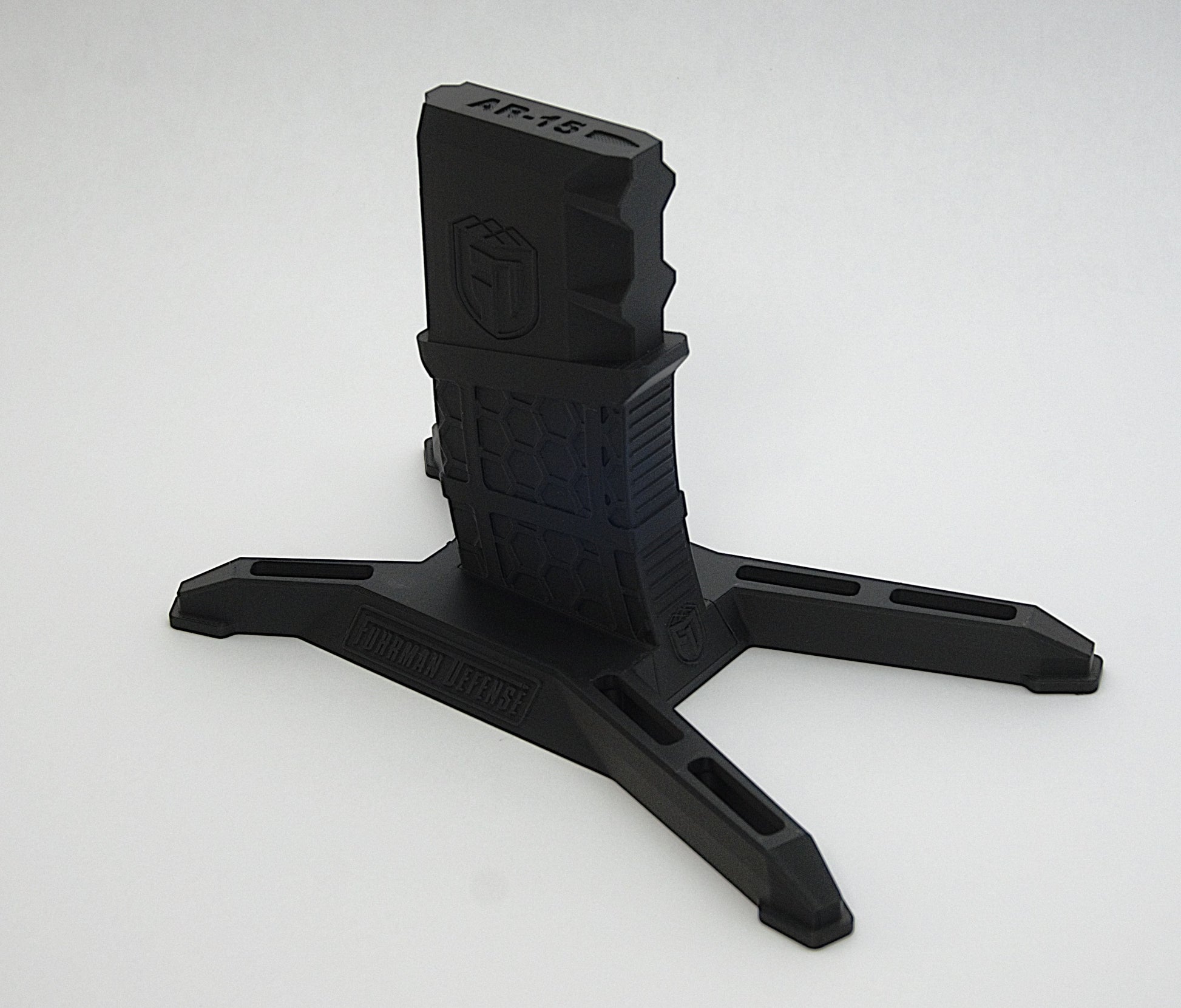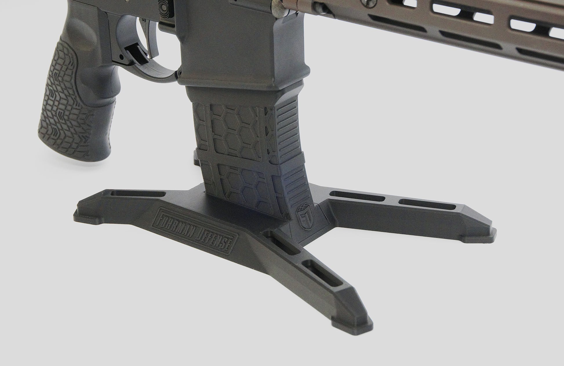 Let your AR-15 stand proud. The Fuhrman Defense AR-15 MOD-1 Stand is a low-profile magwell holder designed to showcase your rifle with a sleek, complementary design. Ideal for the gun safe, display shelf, man cave, gun room, work bench, or armory.